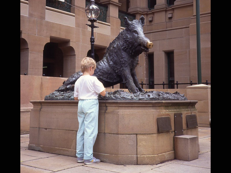Il Porcillino (Porsas) Sydneyn sairaalan pihassa on kopio firenzeläisestä veistoksesta.