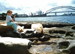 Lentäessämme Honolulusta olimme menettäneet päivämäärärajan ylittäessämme kokonaan torstain 8. joulukuuta. Laskeuduimme siis Sydneyn lentokentälle 10 tunnin lennon jälkeen perjantaina kello 8.20. Ennen laskeutumista lentoemäntä, joka oli miespuolinen vitsiniekka, suihkutti hyönteismyrkkyä matkustamoon, etteivät ulkomaan elukat pääse turmelemaan Australian puhdasta luontoa. Erään matkustajan ollessa huolissaan omasta myrkyttymisestään suihkuttaja totesi, ettei mitään vaaraa ole. Siihen eivät edes hyttyset kuole. Muodollisuuksista selvisimme nopeasti, ja puolisen tuntia odoteltuamme Osmo tuli meitä hakemaan. Kentältä ajoimme Yagoonaan autovuokraamoon, mistä Päivi ja Markku olivat varanneet asuntoauton. Ajelimme sitten peräkkäin kohti Carlingfordia. Perille päästyämme Osmo esitteli meille talonsa ja jääkaappinsa ja kiiruhti töihin. Kello oli ehtinyt jo puoleen päivään. Hetken lepäiltyämme kävelimme Carlingfordin ostoskeskukseen. Ilma oli mielettömän lämmin ja painostava. Kävimme syömässä Kentucky Fried Chickenissä, minkä jälkeen kiertelimme kaupoissa. Ostoskeskus oli aika iso, ja siellä oli monenlaista myymälää. Ostimme vain vähän ruokaa ja melkein uuvuimme kotimatkalla. Suihku oli välttämätön heti kämpille päästyämme. Sitten alkoi ukonilma. Se meni jo välillä ohi, mutta alkoi sitten uudelleen entistä kovemmalla paukkeella ja räiskeellä. Ukkonen oli aivan päällä pitkän aikaa. Talo tärisi kuin maanjäristyksessä ja taivas oli yhtenä valomerenä. Yöksi ilma rauhoittui, joten pystyimme nukkumaan. Emma oli nukahtanut jo viiden aikoihin eikä tiennyt koko ukonilmasta mitään, kerran vain raotti vähän silmiään kovan rysäyksen jälkeen, mutta painui saman tien unten maille. Lauantai 10.12.1988 - Sydney