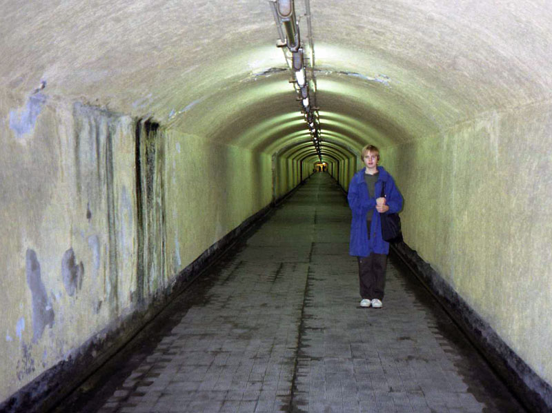 Tunneli, joka johtaa hissille, jolla pääsee Santa Barbaran linnoitukselle