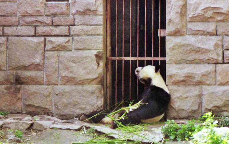 Panda Pekingin eläintarhassa. Pandat eivät olleet poseeraustuulella.