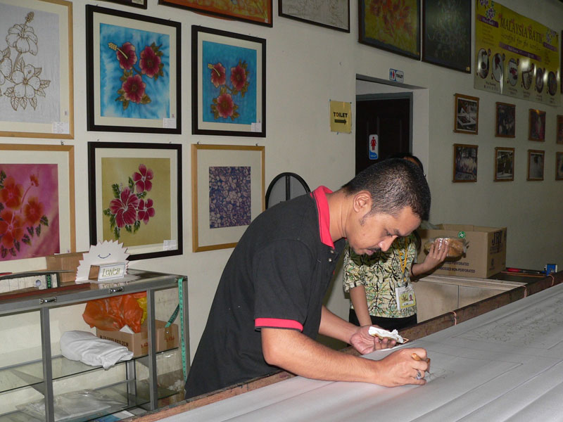 Kävimme katsomassa batiikin valmistusta. Taitavat maalarit loihtivat vapaalla kädellä kuviot