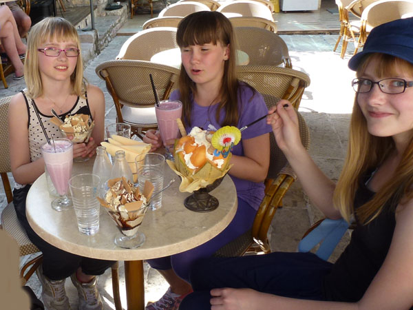 Perjantai 22.6.2012 - MontenegroTulimme Dubrovnikista bussilla rajan yli kello 8.40 ja pidimme heti puolen tunnin mittaisen tauon huoltoasemalla. Tämä raja oli suljettuna sodan alusta eli vuodesta 1991 vuoden 1998 jouluun saakka. Montenegro eli Musta vuori on yksi euromaista, vaikka se ei ole Euroopan unionin jäsenmaa. Dinaari oli siellä käytössä valuuttana vuoteen 1999 asti, jolloin otettiin käyttöön Saksan markka. Euro korvasi markan vuonna 2002. Ohitimme Zelenikan kylän, joka niitti aikaisemmin kyseenalaista kunniaa Italian mafian salakuljetuspaikkana. Tulimme näköalapaikalle Kotorin lahdelle kello 9.45. Sieltä näkyi kaksi pientä saarta, joilla kummallakin on kirkko. Toinen on tekosaarella, joka piti rakentaa, kun paikalle ilmestyi toistuvasti ikoni. Tällä retkellä ohitimme myös Risanin, missä Aino kävi 27 vuotta aikaisemmin katsomassa 100-luvulta peräisin olevia jokseenkin hyvin säilyneitä roomalaisia lattiamosaiikkeja. Oppaamme ei ollut kuullutkaan niistä. Näin tytötkin säästyivät kokonaan roomalaisilta raunioilta. Koko matkan aikana ei nähty siis yhtään kunnon raunioita, kylläkin parinkymmenen vuoden takaisia senkin edestä. Tulimme Kotorin vanhaankaupunkiin puoli yhdeltätoista. Pyhä Trifon on Kotorin suojeluspyhimys, ja kävimme hänelle omistetussa katedraalissa. Edellisellä kerralla meillä oli katedraalissa opastus (kuten kaupunkikävelylläkin), mutta nyt Aurinkomatkat on ilmeisesti ryhtynyt säästökuurille, kun kummassakaan kaupungissa (Kotor ja Budva) ei ollut opastusta. Katedraali tuhoutui viimeksi vuoden 1979 maanjäristyksessä, mutta se on entisöity. Siellä on varsin laaja kokoelma pyhäinjäännöksiä ja hopeaesineitä. Kurkkasimme myös keskusaukion laidalla oleviin Pyhän Luukaksen ja Pyhän Nikolan ortodoksikirkkoihin. Muuta emme sitten ehtineetkään, kun matka jatkui ylös vuoristoon. Serpentiinitiellä on 25 numeroitua mutkaa, mutta kaikki mutkat eivät sentään ole saanut numeroa. Tie on niin kapea, että vastaantulevia busseja pystyy ohittamaan harvoissa paikoissa. Bussiamme vastaan tuli kaksi bussia, jolloin jouduimme peruuttamaan todella pitkältä tuntuvan matkan. Pääsimme kuitenkin perille välipalapaikalle, jossa saimme kinkku-juustovoileivän (Njeguški sir and Njeguški pršut) ja viiniä (+ kokista). Ilmakuivattu kinkku saa erityisen makunsa, kun se savustetaan pyökkipuun savulla. Jatkoimme Cetinjen kautta rannikolle Budvaan. Budvassa oli taas puolitoista tuntia aikaa (kolmesta puoli viiteen). Lähdimme kävelemään pieneen muurien ympäröimään vanhaankaupunkiin. Sen läpi ei kestänyt kauaa kävellä ja menimme kahvilaan nauttimaan isot jäätelöannokset. Vanhakaupunki tuhoutui pahasti maanjäristyksessä vuonna 1979, mutta se rakennettiin uudelleen vanhan mallin mukaiseksi.