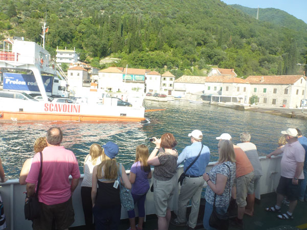 Kello viisi tulimme Lepetaniin, josta on lauttayhteys Kotorinlahden yli. Lauttaa ei tarvinnut odottaa