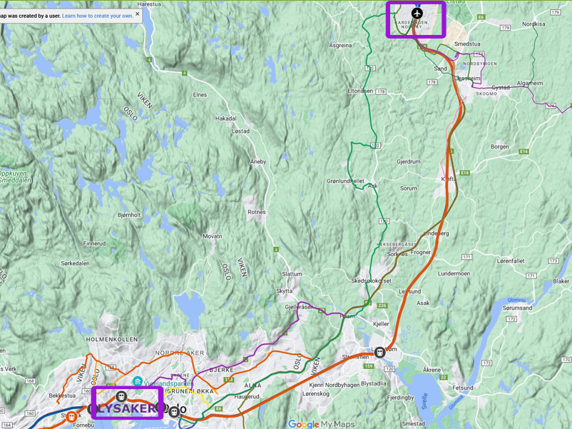 Junalla lentoasemalta Lysakerin ja sieltä keskustaan