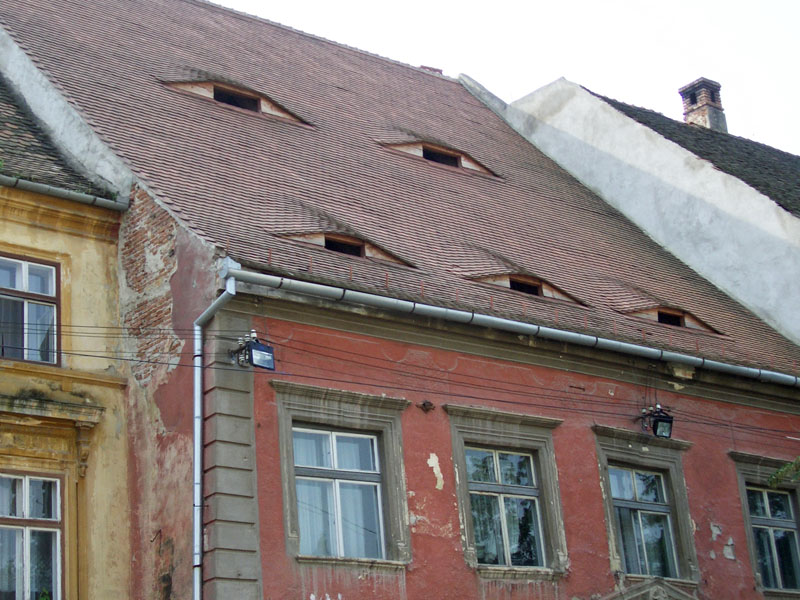Sibiun vanhoissa taloissa on silmiä muistuttavia kattoikkunoita.