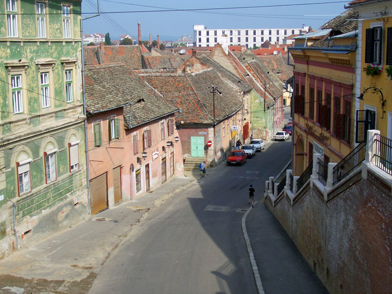 Sibiun alakaupunkiin johtavat katu ja portaat.