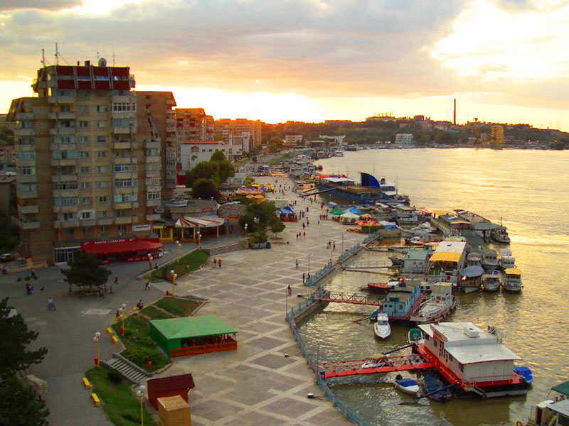 Tulcean rantakatua aamulla hotellihuoneemme parvekkeelta nähtynä