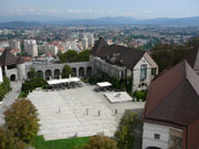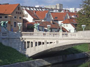 Tiistai 28.8.2007 - Ljubljana-ZagrebLähdimme opastetulle kaupunkikävelylle yhdeksältä aloittaen Miklosicev-puistosta. Puistoa reunustaa art deco- eli jugend- eli secession-tyyliset talot. Lisää komeita taloja on puistosta Preseren-aukiolle johtavan Miklosiceva-kadun varrella. Aukiolta jatkoimme Wolfova-katua pitkin filharmonikkojen talon ja yliopiston kautta Suutarien sillalle. Alkuperäistä puusiltaa reunusti suutareiden kojut, josta nykyinenkin Otto Wagnerin oppilaan Plecnikin vuonna 1931 suunnittelema silta on saanut nimensä. Ylitimme Ljubljanica-joen ja tulimme vanhaan kaupunkiin. Teimme pienen lenkin Levstik-aukiolle, jossa on kopio 1600-luvun renessanssi-suihkulähteestä, joka esittää Herkulesta. Poikkesimme sitten kaupungintalolla katsomassa alkuperäistä. Tuomiokirkon rakennustyöt aloitettiin vuonna 1701 roomalaisen arkkitehdin Andrea Pozzon suunnitelmien mukaan. Kupoli lisättiin vuonna 1841. Paavi vieraili Ljubljanassa vuonna 1996, minkä kunniaksi ovet uusittiin. Pronssiseen pääoveen on kuvanveistäjä Tone Demsar kuvannut Slovenian kristinuskon 1250-vuotista historiaa. Sivuovessa on kuvattuna Ljubljanan hiippakunnan historiaa. Kierroksen jälkeen kävimme capuccinolla/pirtelöllä ja lähdimme kiipeämään linnoitukselle. Kaivaukset ovat osoittaneet, että kukkula oli linnoitettu jo kelttien ja illyyrialaisten aikana. Nykyinen linna mainitaan ensimmäisen kerran vuonna 1144, mutta sen arvellaan olevan useita satoja vuotta vanhempi. Hyvin voimakas maanjäristys tuhosi Ljubljanan kaupungin vuonna 1511, ja linnakin on pääosin rakennettu sen jälkeen uudelleen. Linna toimi myöhemmin varuskuntana ja vankilana. Emma kiipesi torniin ja sai sieltä näpsityksi muutamia hyviä kuvia kaupungista. Kävelimme alas eri polkua kuin mitä kiipesimme ylös. Kävimme vielä hampurilaisella ennen kuin matkamme jatkui bussilla kohti Kroatiaa ja Zagrebia, jonne saavuimme kello 18. Hotellimme sijaitsi aika kaukana keskustasta ja lähellä lentokenttää. Näin ollen ei ollut kiusausta lähteä mihinkään ennen illallista, joka tarjottiin kello 19.30. Zagreb |