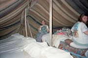 Yöksi tarjolla oli hotellimajoitusta ja telttamajoitusta. Koska olimme
