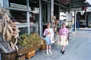Menimme aamupalalle kello 9. Tarjolla oli leipää, fetaa, makkaraa, oliiveja,