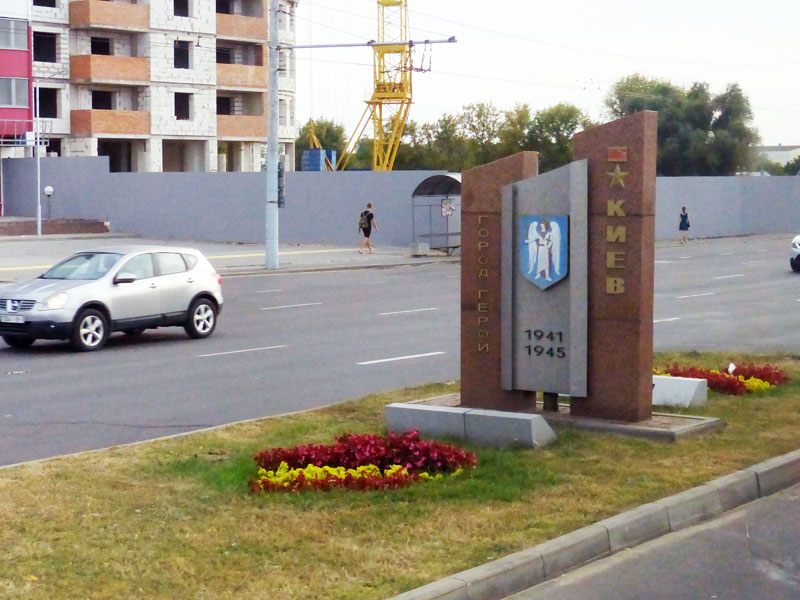 Sankarikaupunkien muistomerkkejä Brestiin johtavan tien varrella. Tässä Kiova.