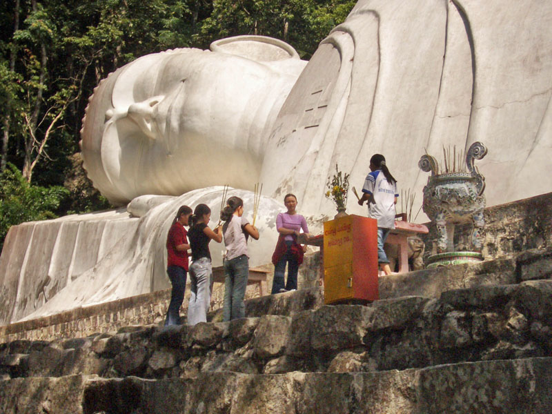 Valkoinen lepäävä Buddha Ta Ku -vuorella