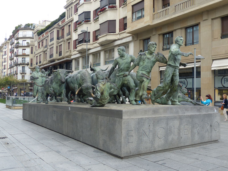 Härkäjuoksua esittävä monumentti Pamplonassa