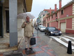 Iltapäivällä teimme sateessa shoppailu- ja lounaskierroksen. Jussin ensimmäinen ostos oli sateenvarjo 3,50 euroa ja