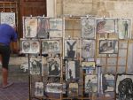 kadunpätkä on varattu katutaiteilijoille, joista yksi maalasi teoksensa sanomalehtipaperille.