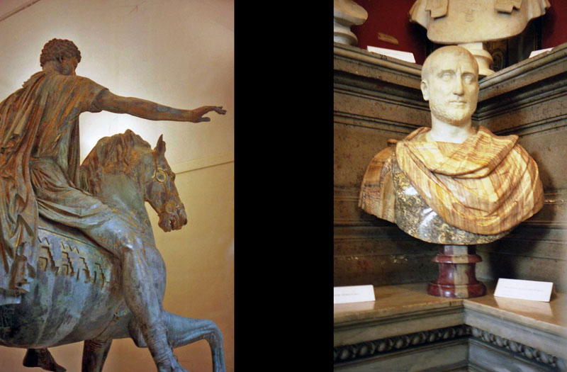 Marcus Aureliuksen ratsastajapatsas ja tuntematon roomalainen