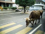 Perjantai 26.10.2007 - Zürich-Liechtenstein-ZürichTulimme Sargansista bussilla Trübbachin kautta Liechtensteiniin. Rein on maiden välinen rajajoki. Liechtenstein on pieni, alle 40000 asukkaan ruhtinaskunta Sveitsin ja Itävallan välissä. Alue on ollut vuosisatojen aikana eri ruhtinassukujen hallussa ja ajoittain Saksan, Itävallan, Preussin, Ranskan, Venäjän ja Ruotsin miehittämä. Ensimmäinen kylä, jonka läpi ajoimme oli Balzers. Sitä komistaa kukkulalla sijaitseva Gutenbergin linna. Kylän pääkadulla tuli vastaan 6-7 lehmän lauma. Ajoimme vielä Triesen-nimisen kylän läpi ennen kuin tulimme pääkaupunki Vaduziin. Ensimmäinen tutustumiskohteemme oli turistitoimisto. Saimme sieltä muutaman esitteen ja kartan sekä vinkkejä siitä, mitä kannattaisi käydä katsomassa. Suuntasimme sitten Liechtensteinin Kansallismuseoon. Museossa ihmettelimme mm. pieniä puisia sydämiä. Niillä koristellaan lehmät Almabtrieb-juhlan aikaan syys-lokakuussa, jolloin lehmät tuodaan alppilaitumilta talveksi alas.