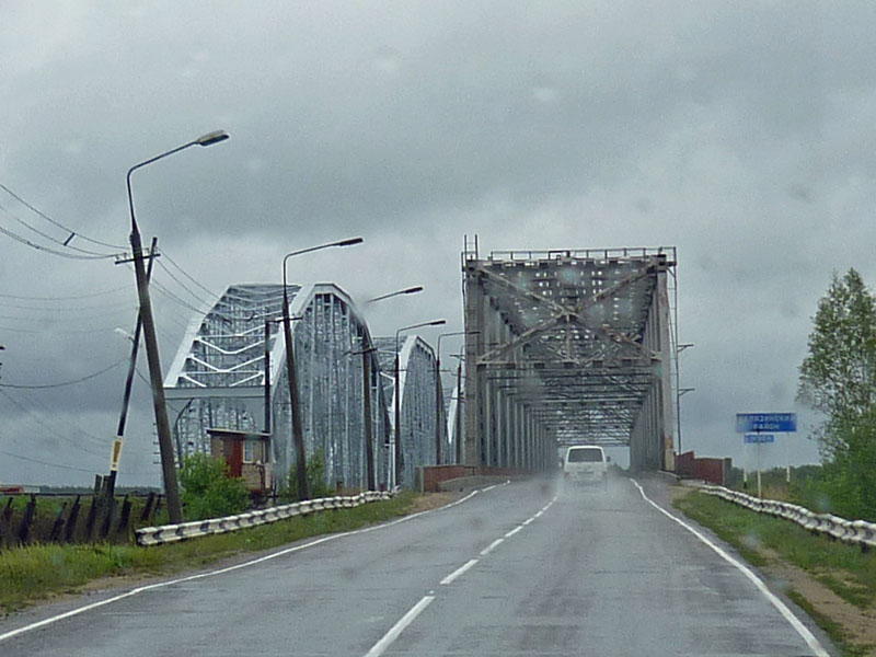 Silta Volgan yli Kashin-Kalyazin -tiellä, vasemmalla rautatiesilta