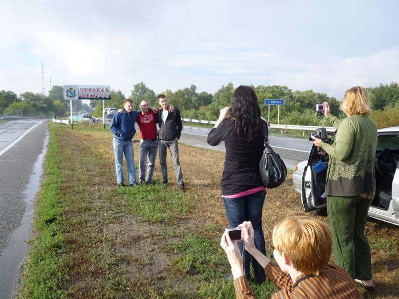 Kuljettajamme poseeraavat Kurskin alueen rajalla.